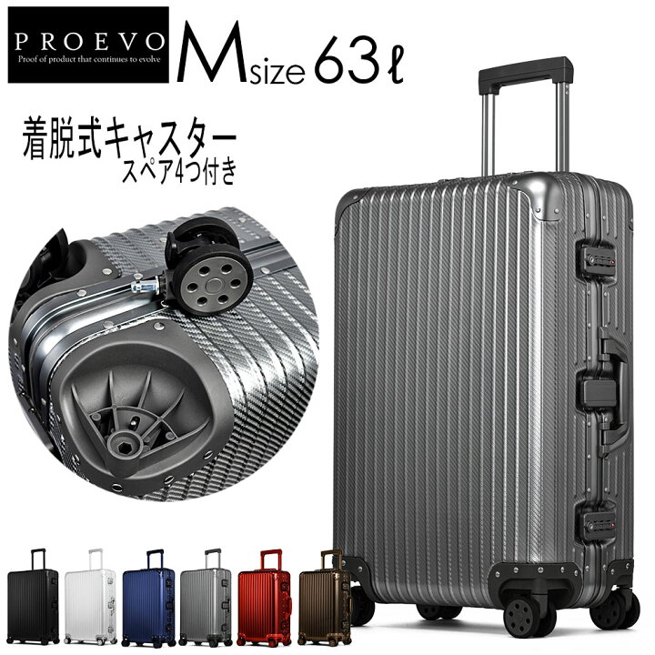 楽天市場 Proevo アルミ スーツケース Mサイズ キャリーケース キャリーバッグ ブレーキ機能 静音8輪 スペアキャスター4つ付き アルミ合金 マグネシウム フレーム 大容量 送料無料 あす楽 海外 旅行 旅箱 Tavivako 楽天市場店